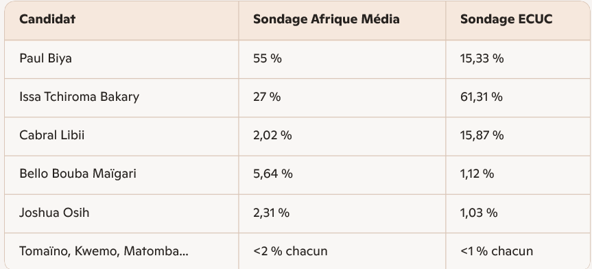 Deux sondages récents, publiés par Afrique Média et la plateforme ECUC, offrent des lectures contrastées :